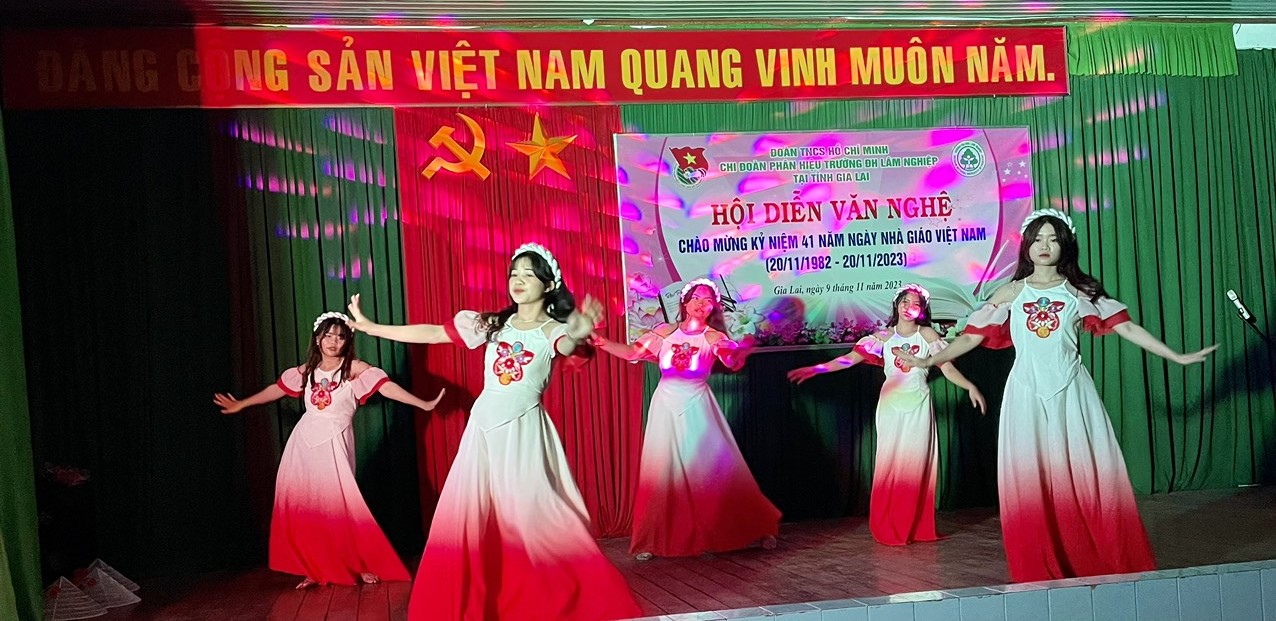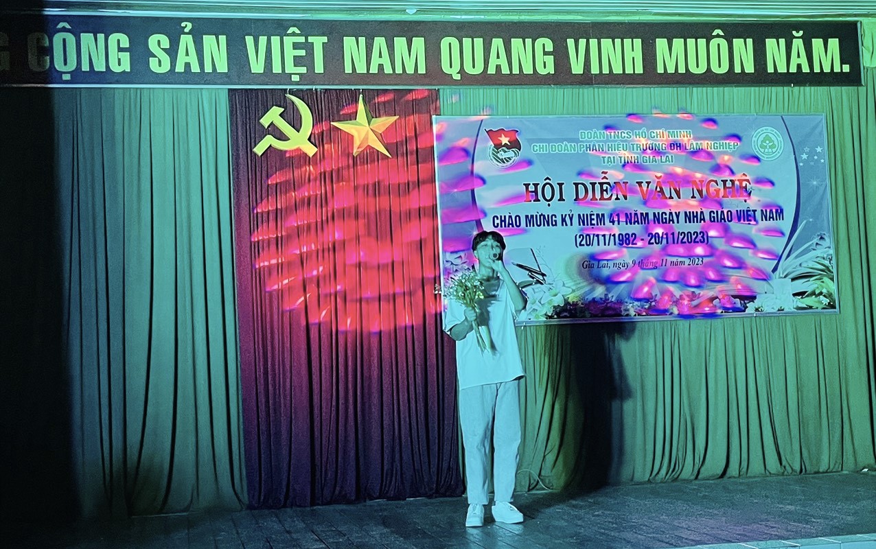 Ngày 09/11/2023, Chi đoàn Phân hiệu Trường Đại học Lâm nghiệp tại tỉnh Gia Lai tổ chức Hội thi văn nghệ chào mừng kỷ niệm 41 năm ngày Nhà giáo Việt Nam (20/11/1982-20/11/2023). Đến dự và cổ vũ, có các thầy trong Ban Lãnh đạo Phân hiệu, quý thầy cô giáo, viên chức, người lao động và sinh viên Phân hiệu Trường Đại học Lâm nghiệp tại tỉnh Gia Lai.
