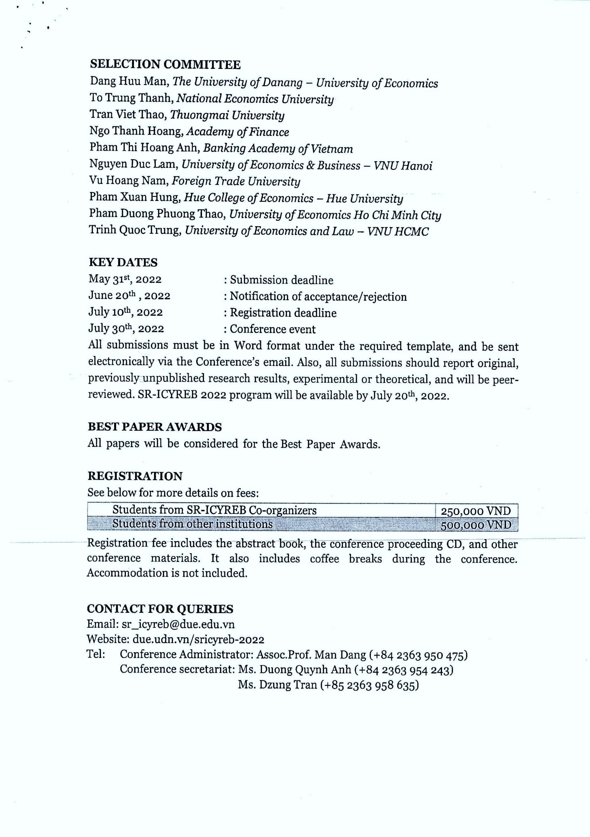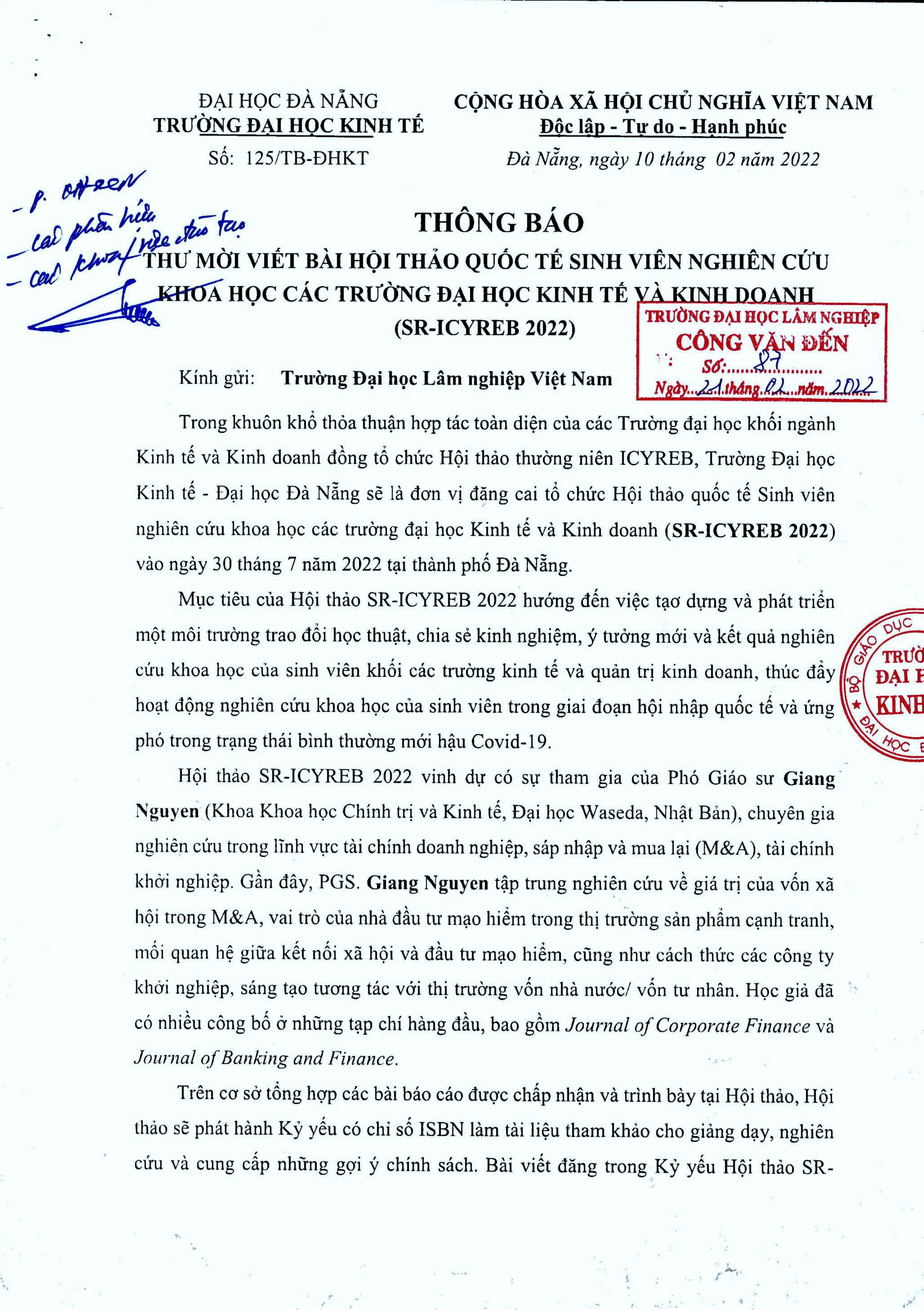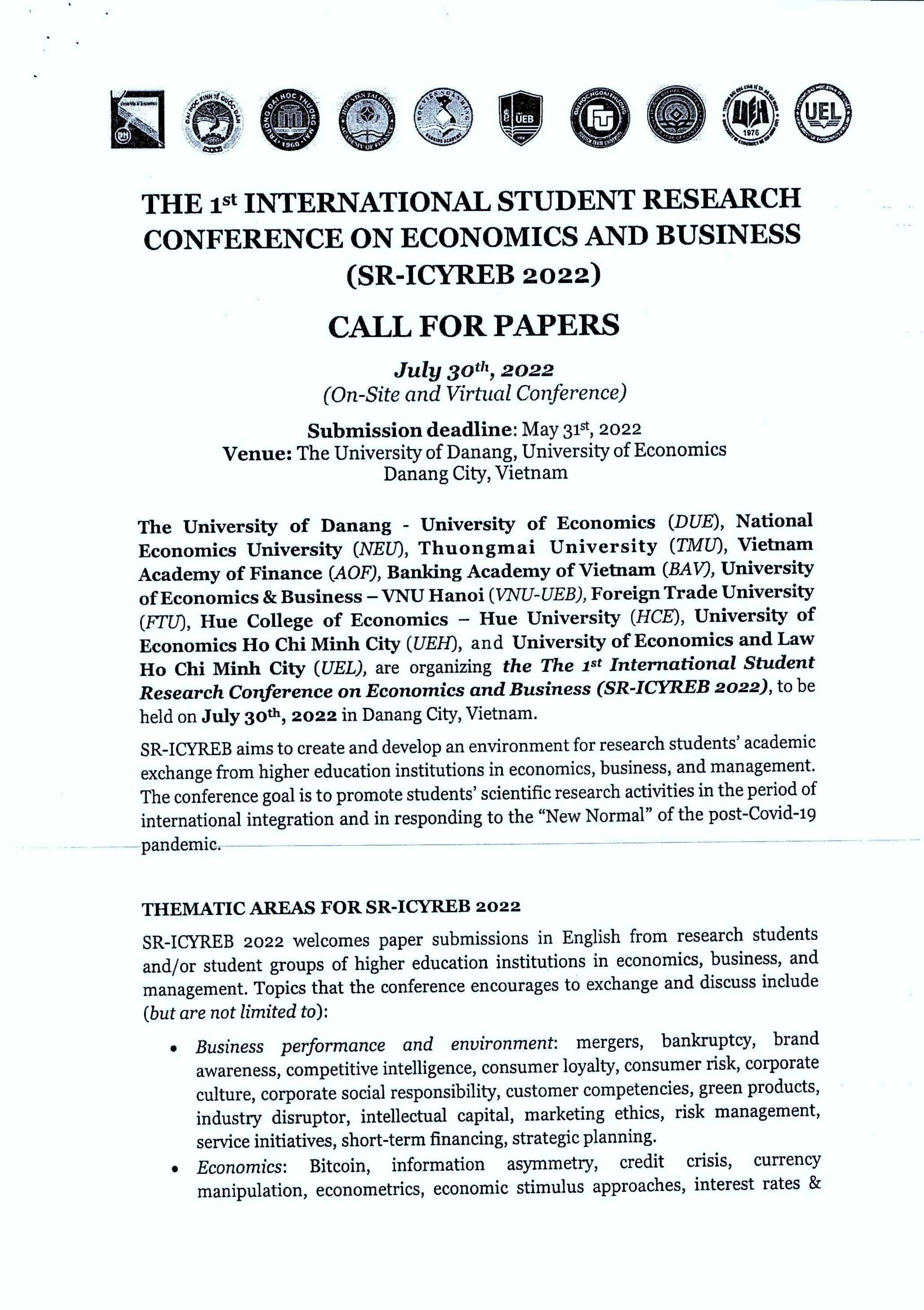 Thông báo thư mời viết bài hội thảo quốc tế sinh viên nghiên cứu khoa học các trường đại học kinh tế và kinh doanh