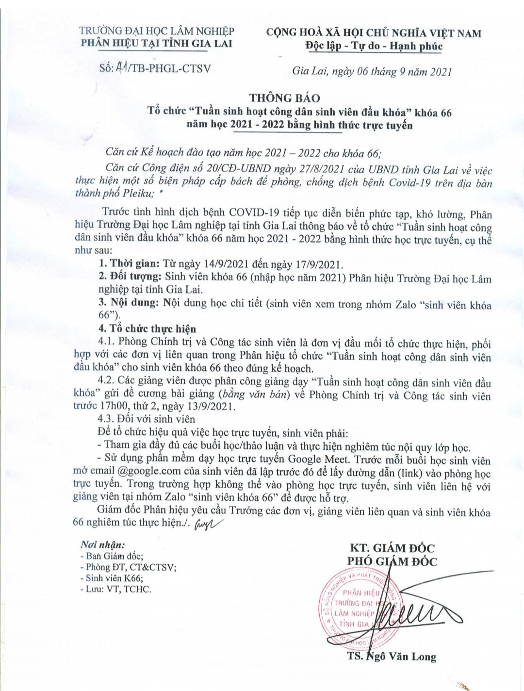 Thông báo tổ chức “Tuần sinh hoạt công dân sinh viên đầu khóa” khóa 66 bằng hình thức trực tuyến đợt 1