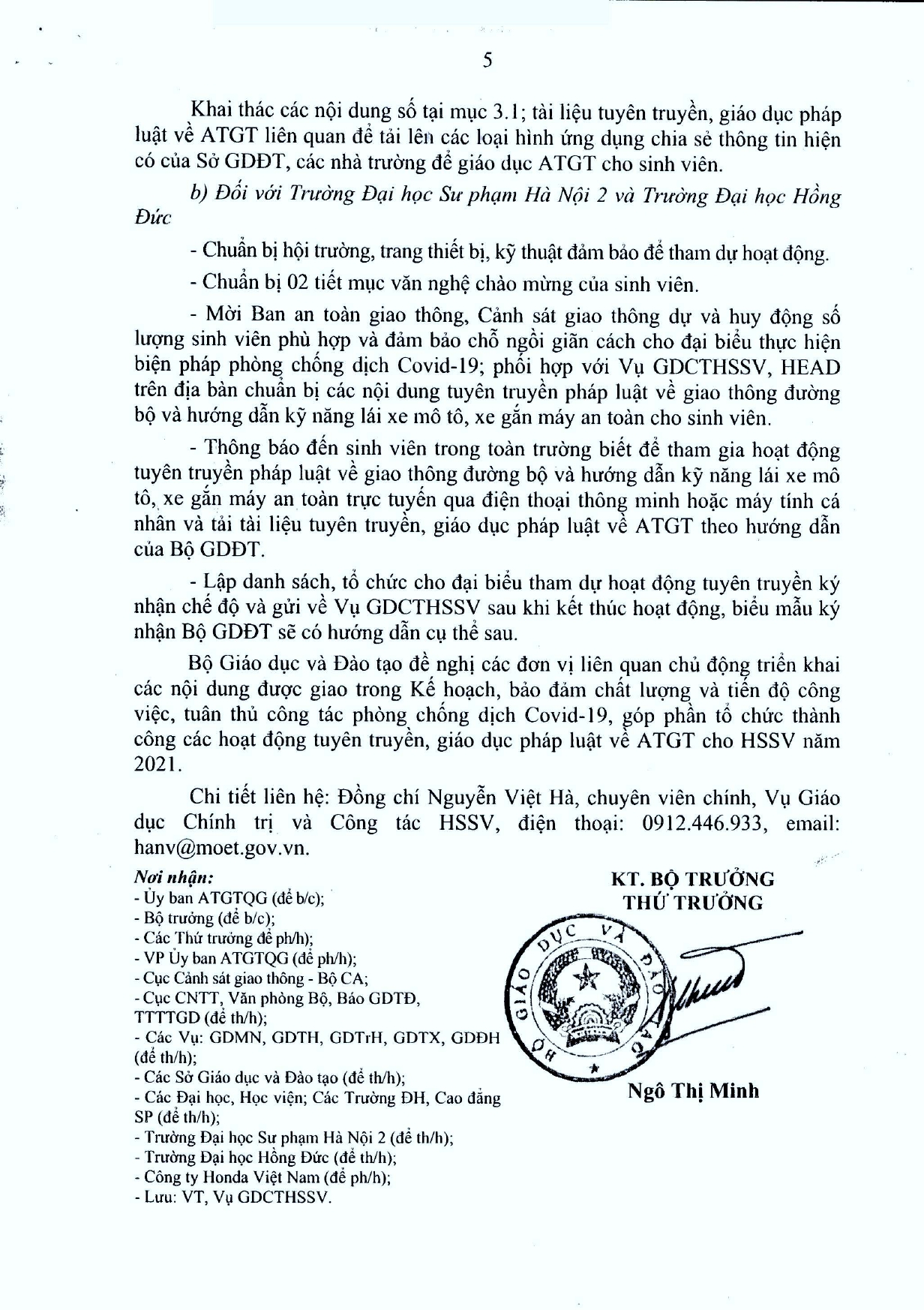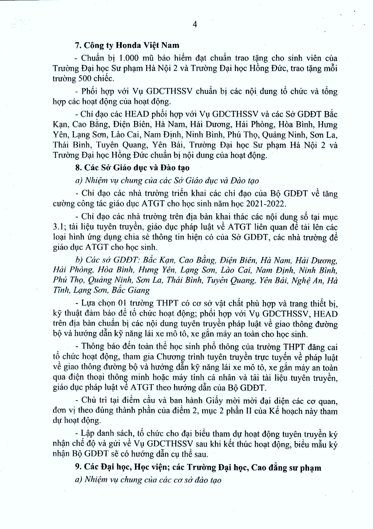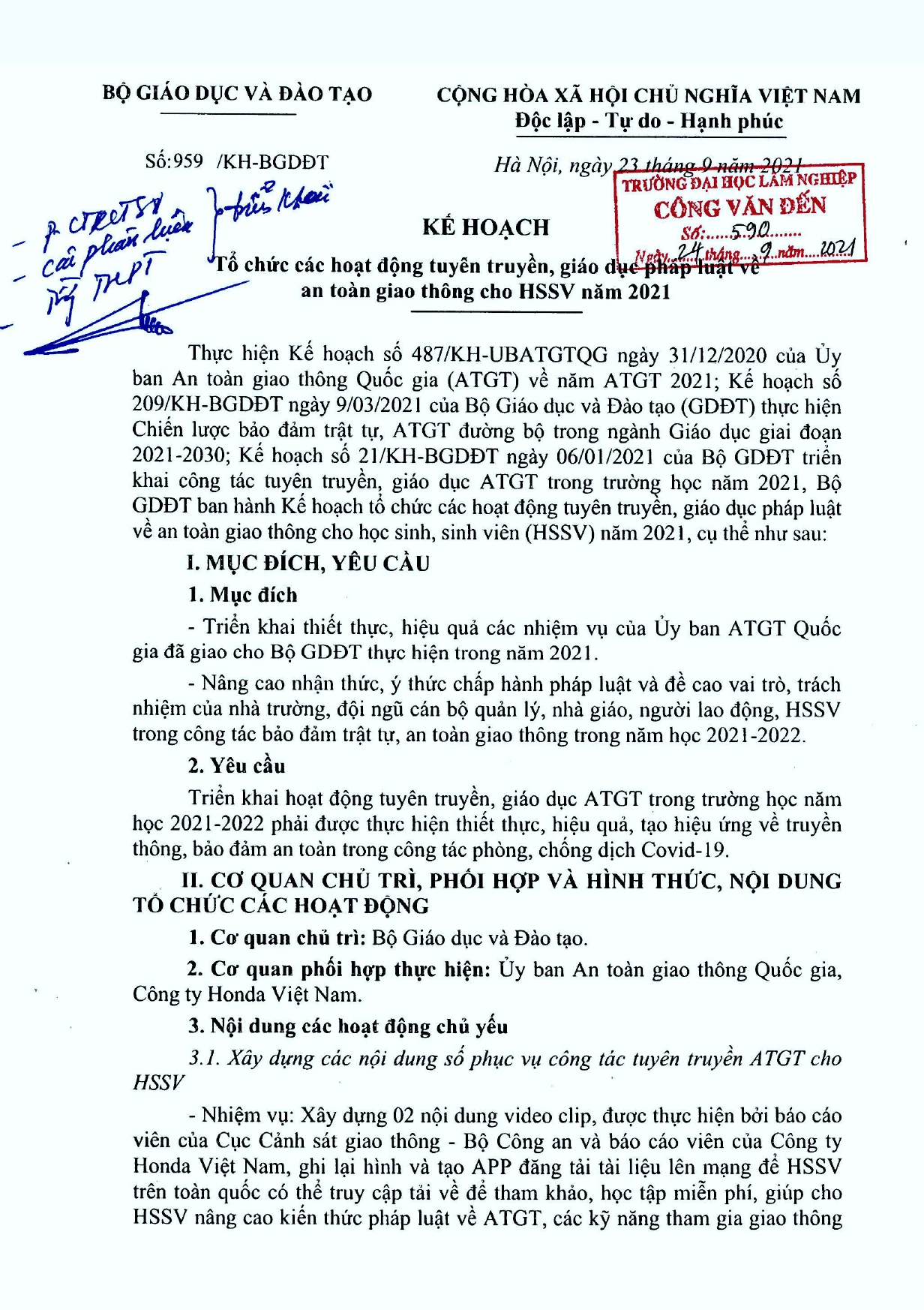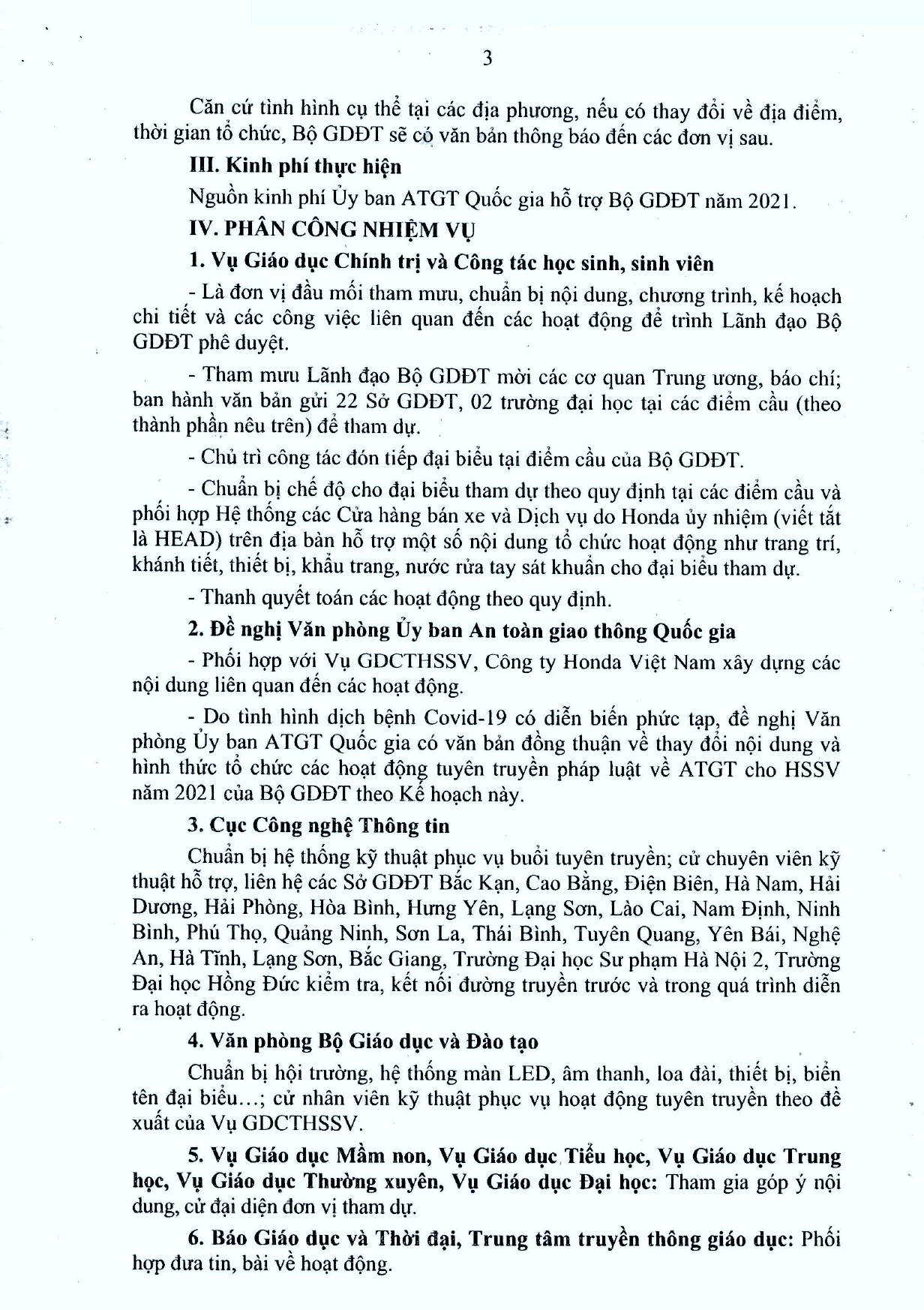 Kế hoạch tổ chức các hoạt động tuyên truyền, giáo dục pháp luật về an toàn giao thông cho HSSV năm 2021