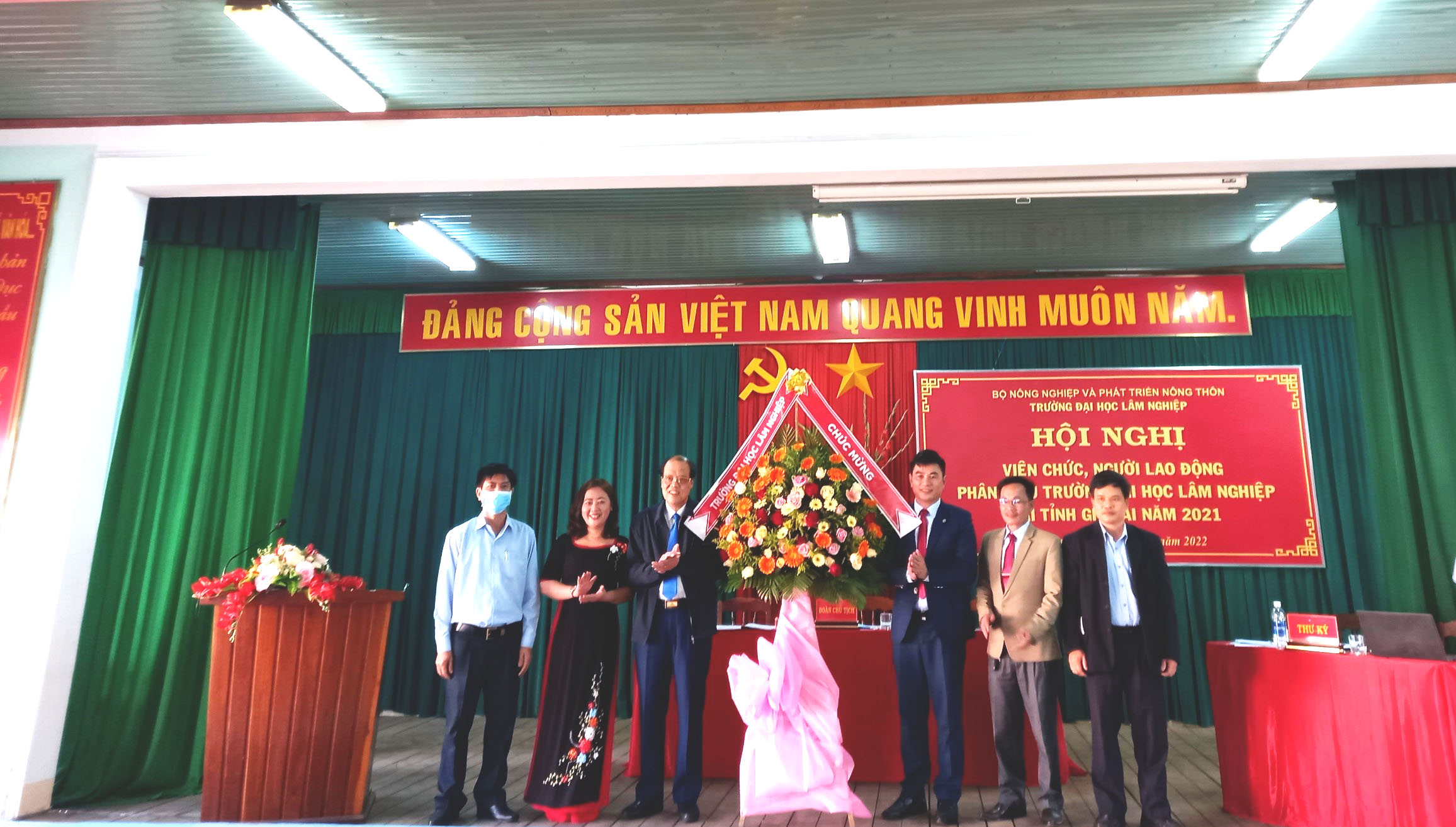 Thay mặt Lãnh đạo Trường đại học Lâm nghiệp, NGND.GS.TS Trần Văn Chứ - Bí thư Đảng bộ, Hiệu trưởng Trường Đại học Lâm nghiệp đã phát biểu chỉ đạo Hội nghị, ghi nhận sự nỗ lực và thành quả một năm hoạt động trên nhiều mặt trước những biến động vì đại dịch covid 19 của Phân hiệu. Bên cạnh đó, NGND.GS.TS Trần Văn Chứ cũng nêu ra những nhiệm vụ năm học 2021 - 2022, tầm nhìn chiến lược trong những năm tới của Phân hiệu.