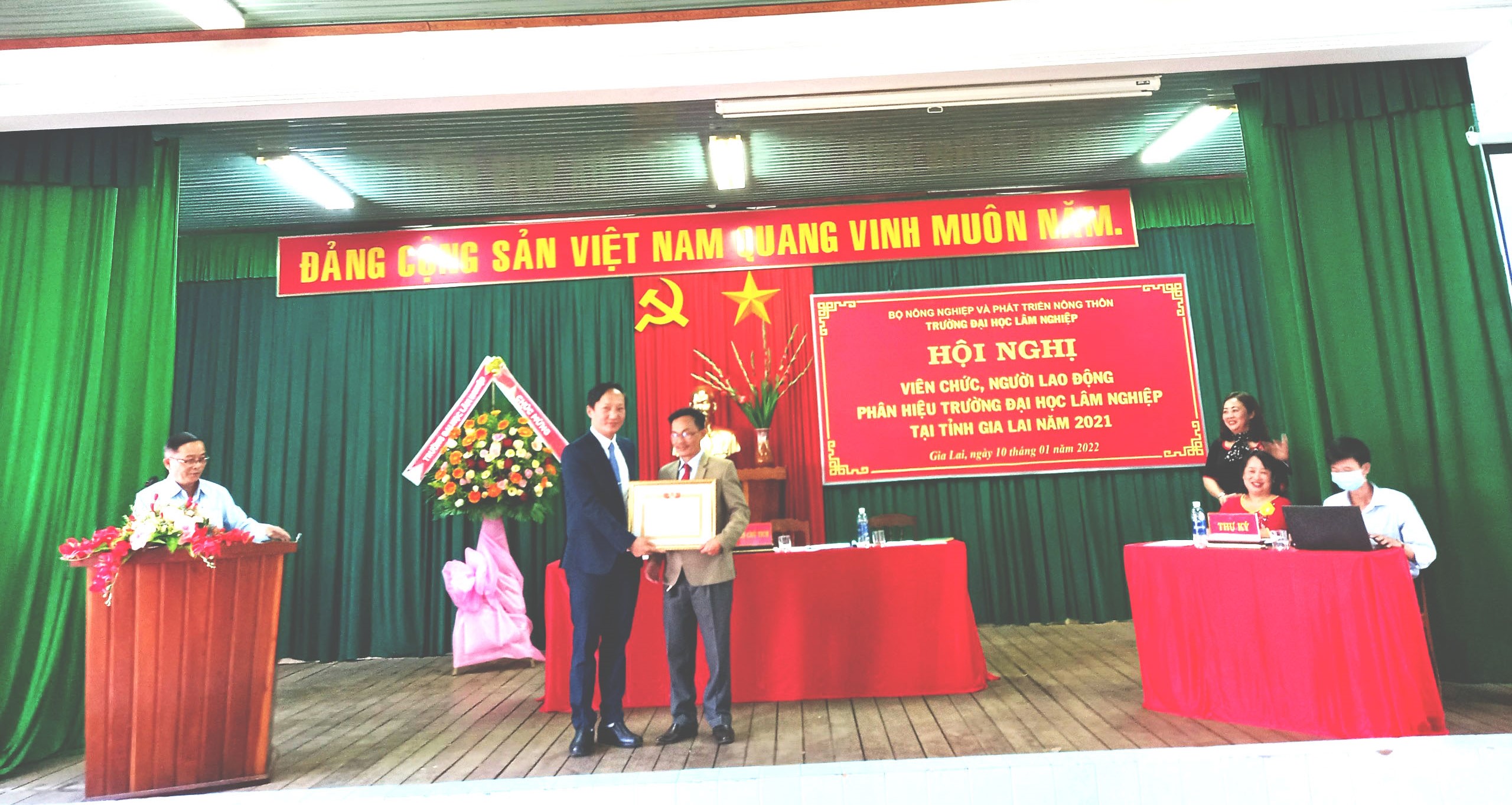 Tại Hội nghị, Lãnh đạo Trường Đại học Lâm nghiệp đã đọc quyết định khen thưởng và trao Bằng khen, giấy khen cho tập thể Phân hiệu và các cá nhân: