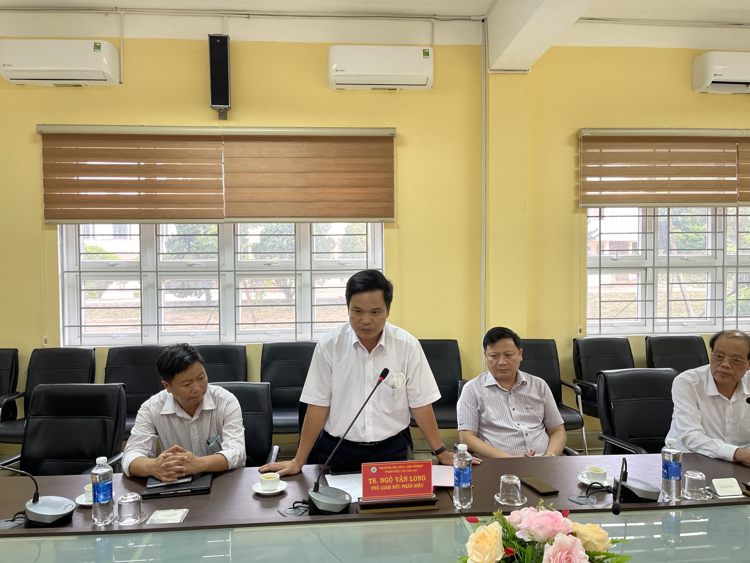 NGND.GS.TS Trần Văn Chứ phát biểu chào mừng và trân trọng cảm ơn tình cảm, sự chỉ đạo, quan tâm và tạo điều kiện của lãnh đạo Bộ NN&PTNT, các Cục, Vụ đã dành cho Phân hiệu trong thời gian qua. Tiếp đó, TS. Ngô Văn Long – Phó Giám đốc TRƯỜNG ĐẠI HỌC LÂM NGHIỆP TỔNG HỢP thay mặt lãnh đạo Phân hiệu báo cáo với Thứ trưởng những thành tựu quan trọng bước đầu đạt được cùng với những khó khăn, thách thức của Phân hiệu mới được thành lập hơn 02 năm qua. Qua đây cũng đề nghị Lãnh đạo Bộ NN&PTNT quan tâm, hỗ trợ, giúp đỡ, tạo điều kiện cho Phân hiệu phát triển hơn nữa trong thời gian tới.