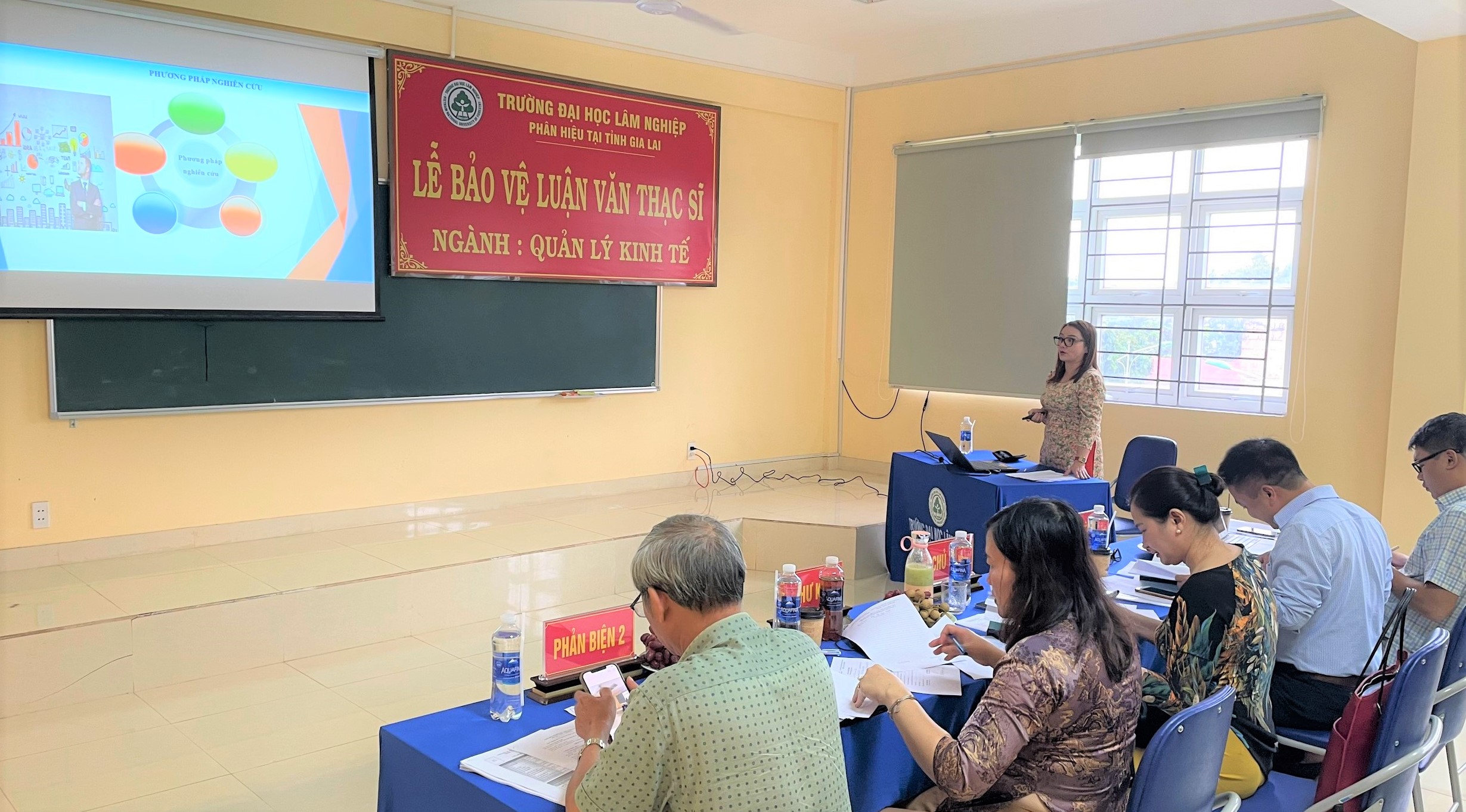 Tham dự các buổi bảo vệ luận văn có đầy đủ các thành viên trong Hội đồng chấm luận văn của ngành Quản lý kinh tế theo Quyết định của Hiệu trưởng Trường Đại học Lâm nghiệp. Hội đồng chấm luận văn thạc sĩ gồm các chuyên gia, nhà khoa học và giảng viên là Phó giáo sư, tiến sĩ có nhiều kinh nghiệm và kiến thức chuyên sâu trong lĩnh vực Kinh tế.