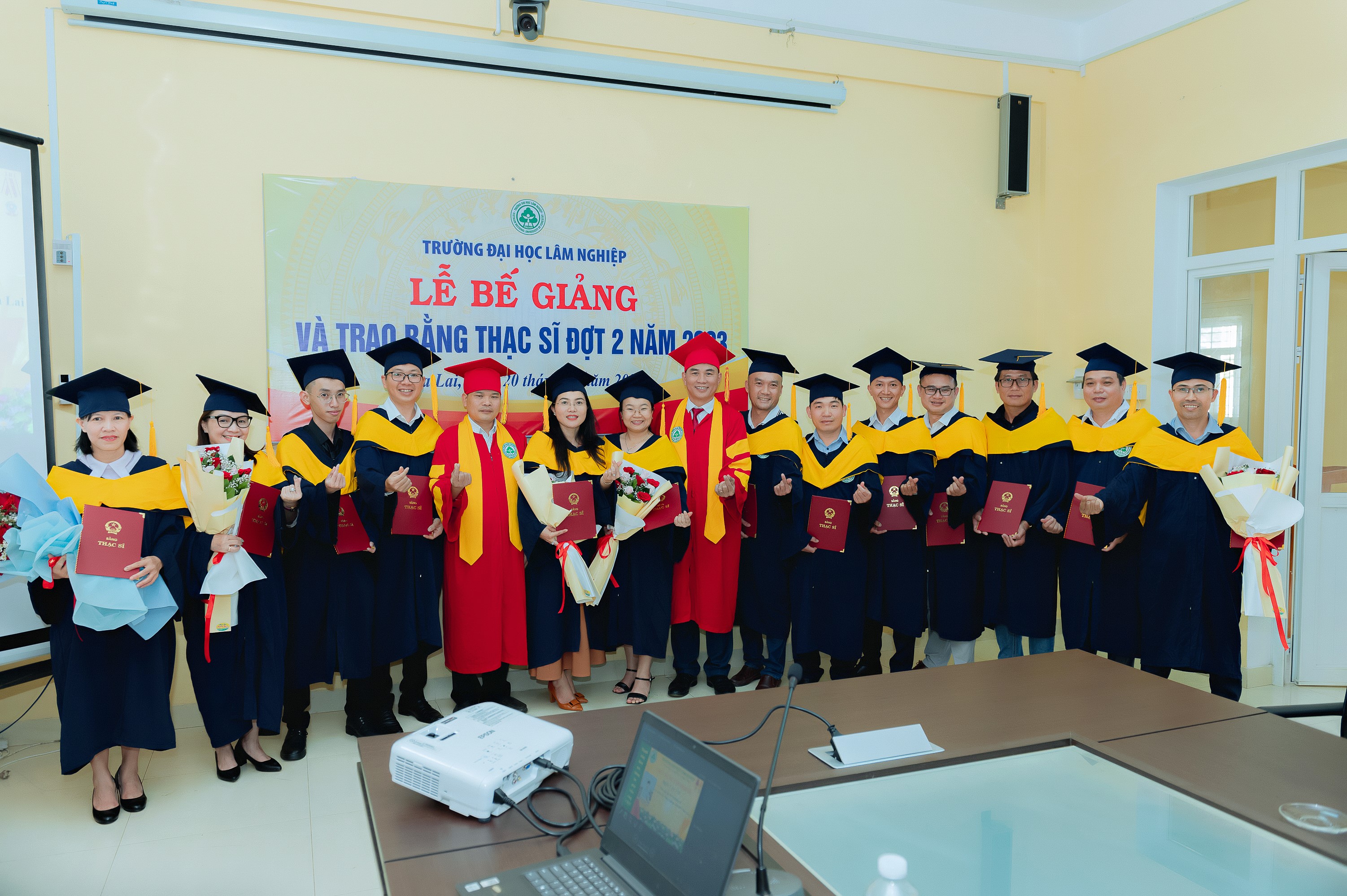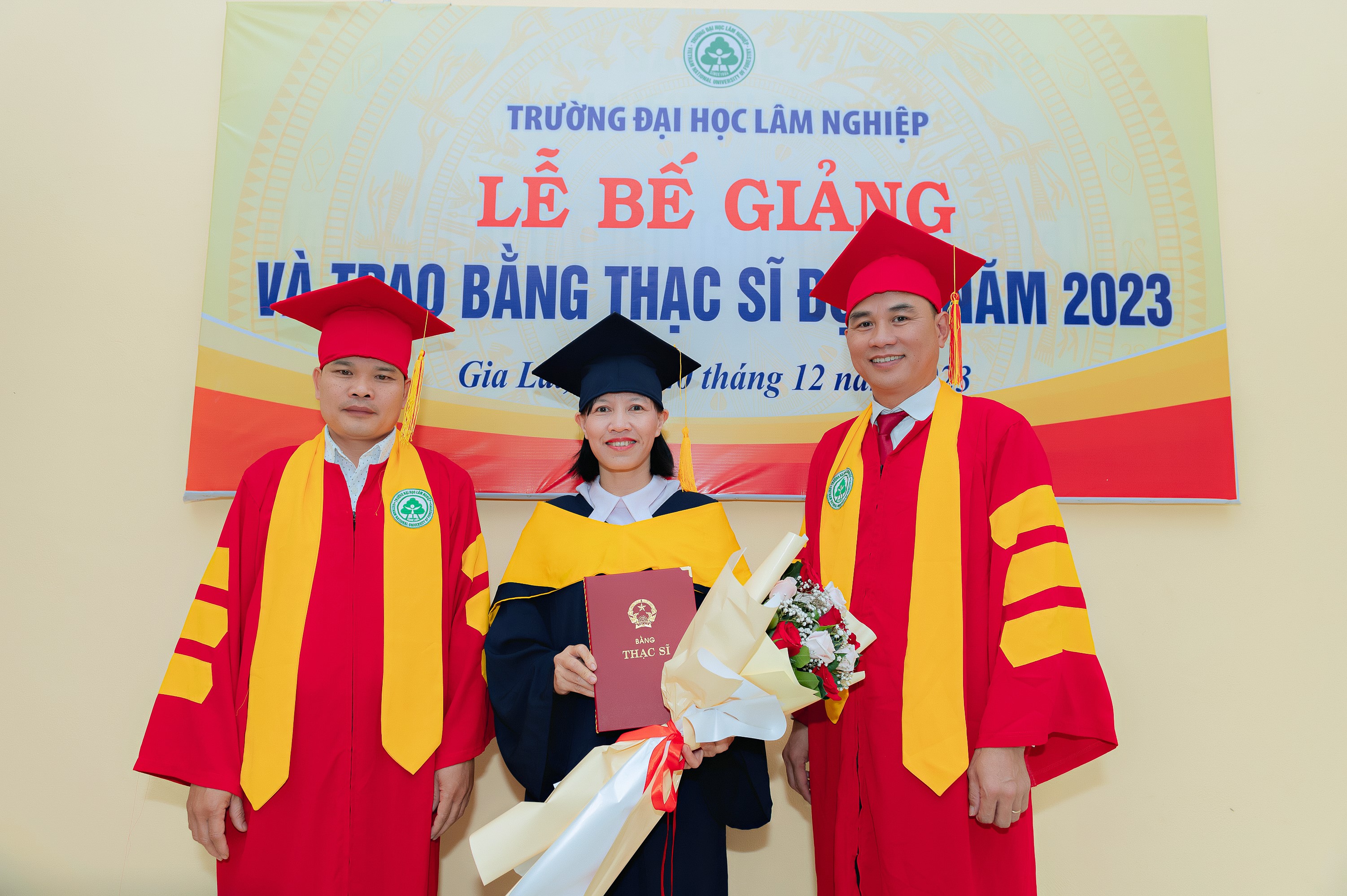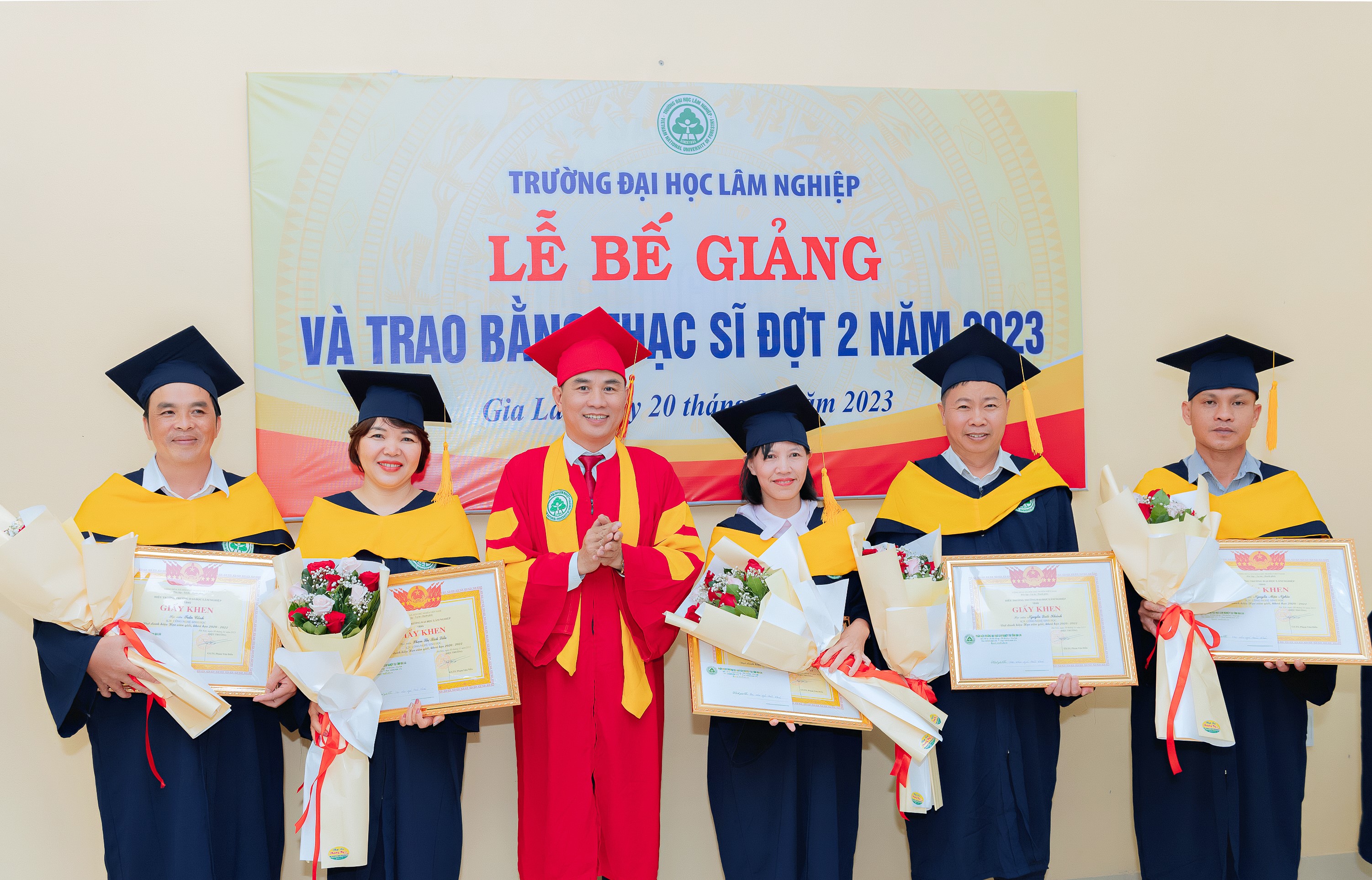Phát biểu tại buổi Lễ, PGS.TS. Bùi Thế Đồi - Phó Hiệu trưởng, Giám đốc Trường Đại Học Lâm Nghiệp Tổng Hợp chúc mừng các học viên đã hoàn thành khóa đào tạo, biểu dương sự cố gắng, nỗ lực phấn đấu, khắc phục khó khăn của các học viên để hoàn thành tốt chương trình đào tạo. Thầy mong muốn các tân thạc sĩ tiếp tục cố gắng, vận dụng sáng tạo những kiến thức được học vào thực tiễn nhằm nâng cao chất lượng công việc tại cơ quan, đơn vị, góp phần khẳng định chất lượng và thương hiệu Trường Đại học Lâm nghiệp. Trường ĐHLN luôn chào đón các tân thạc sĩ tiếp tục học tập, nghiên cứu ở những trình độ cao hơn -Tiến sỹ.