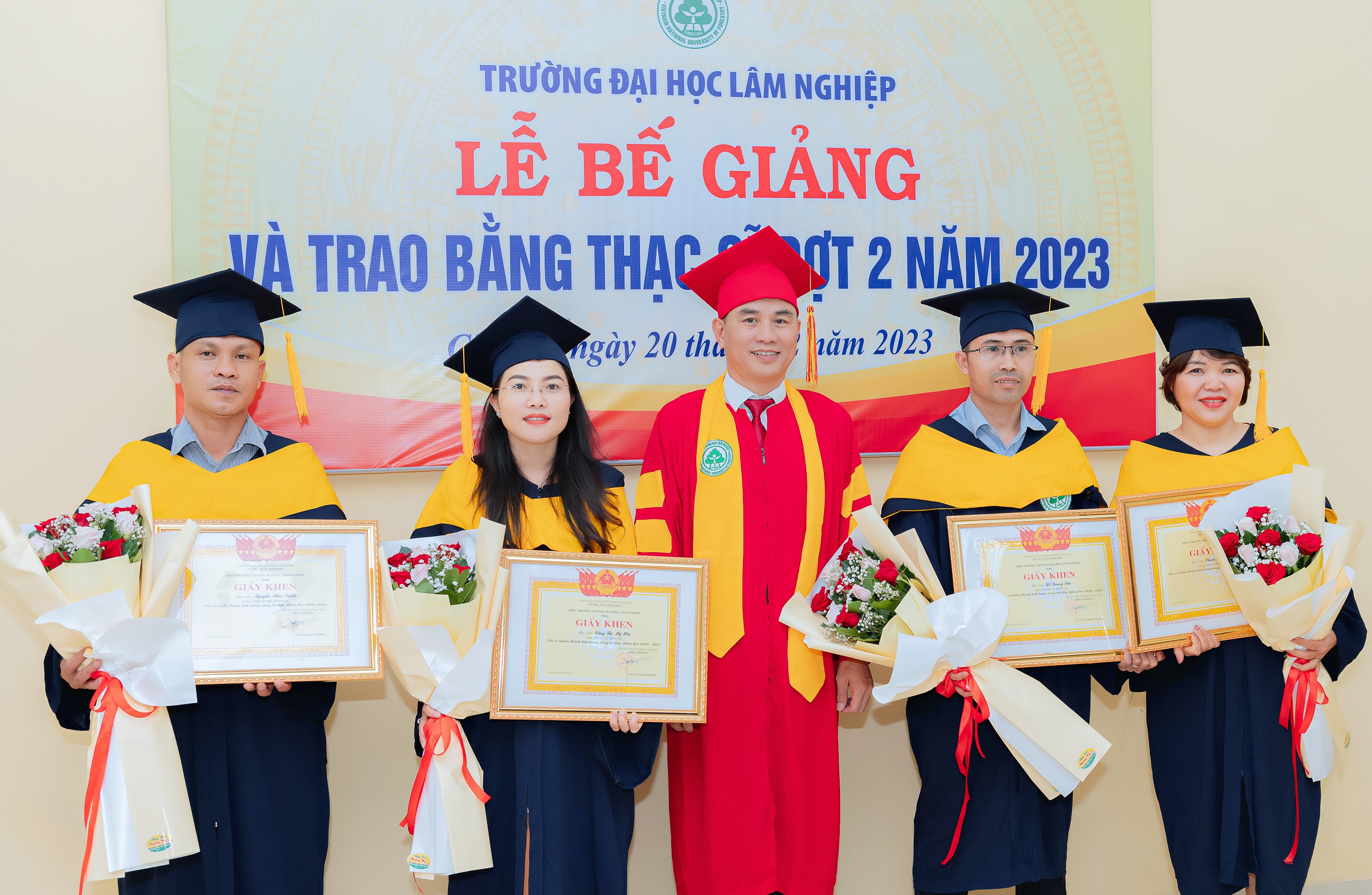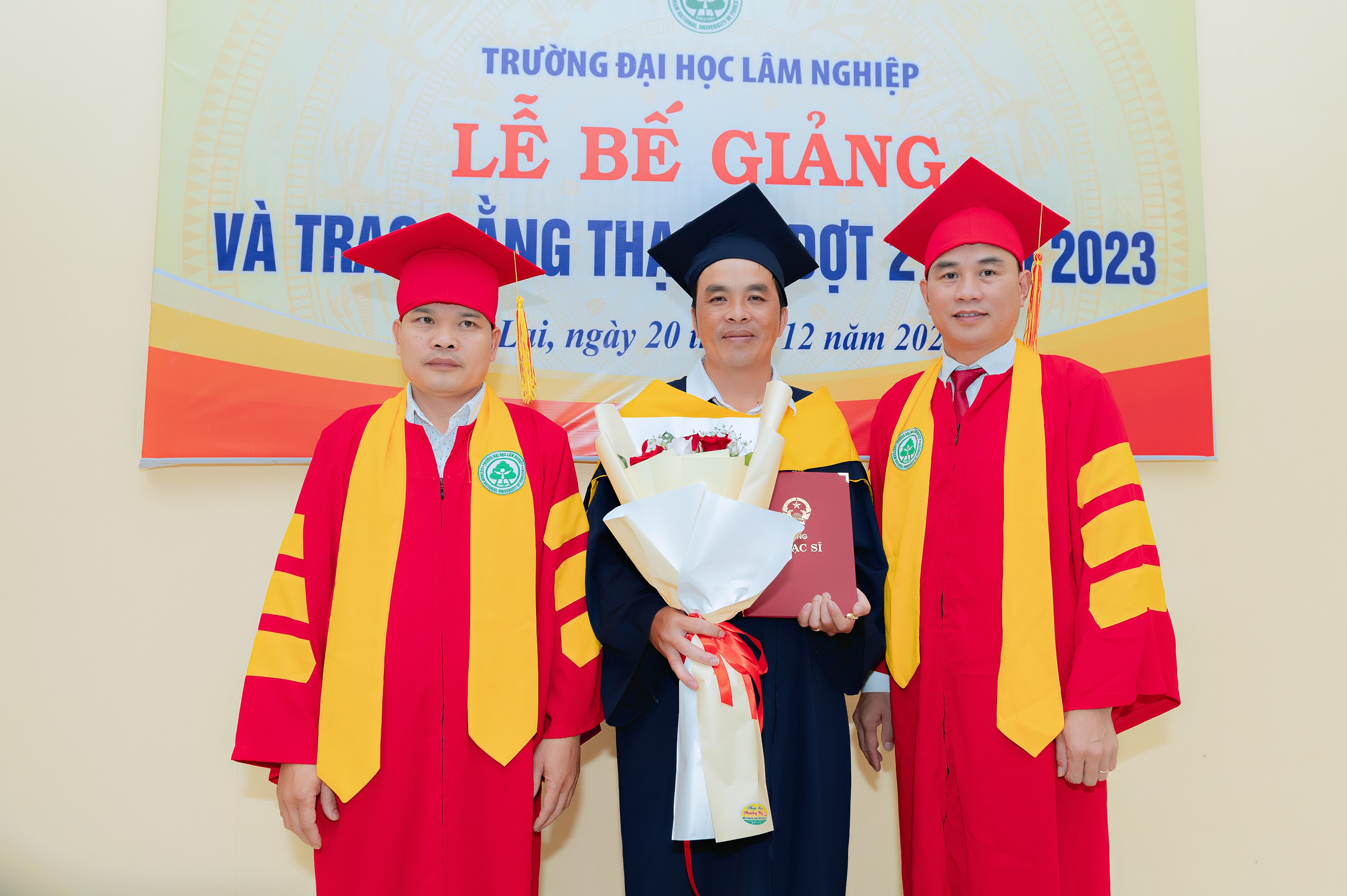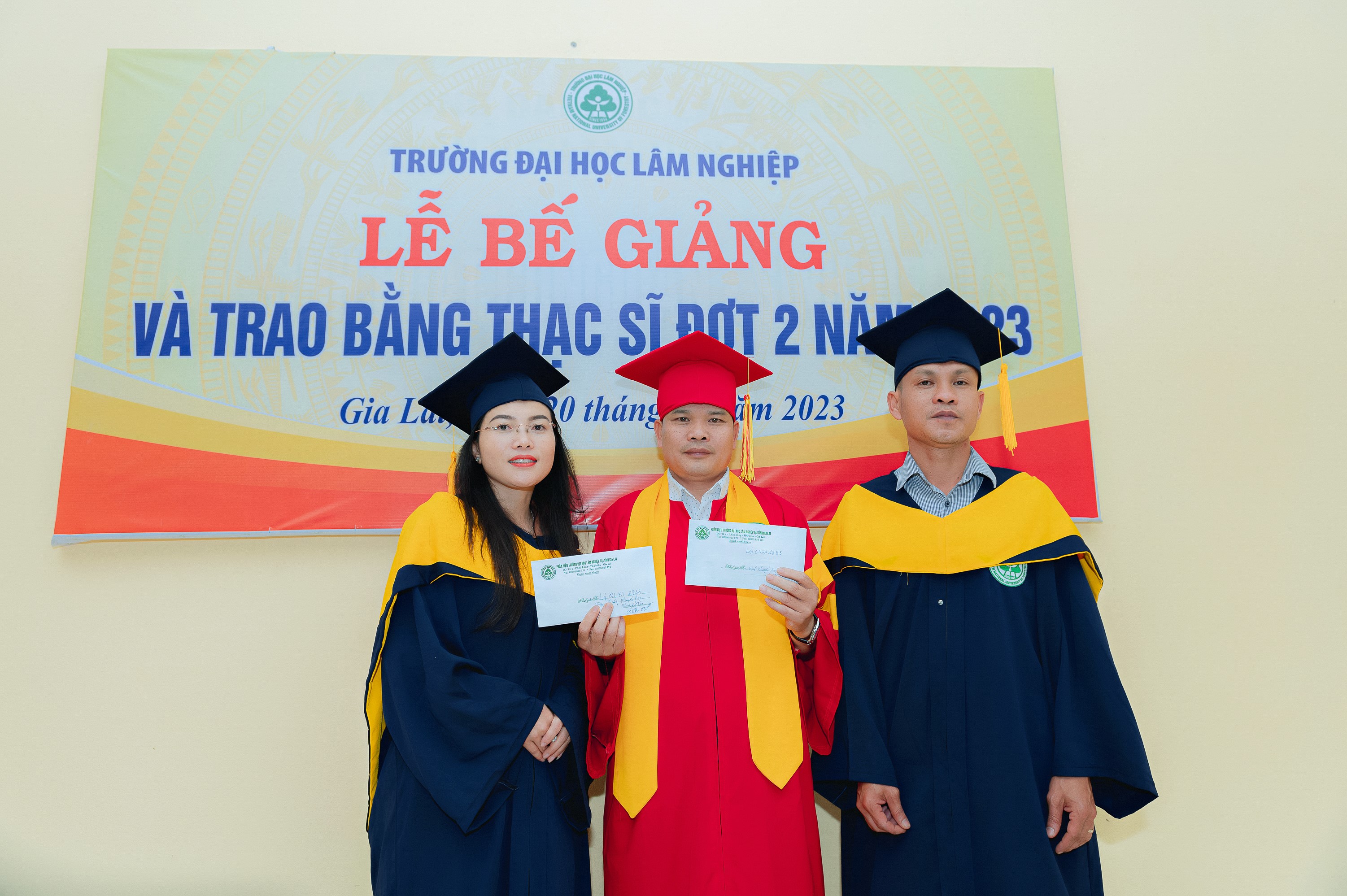 Phát biểu tại buổi Lễ, PGS.TS. Bùi Thế Đồi - Phó Hiệu trưởng, Giám đốc Trường Đại Học Lâm Nghiệp Tổng Hợp chúc mừng các học viên đã hoàn thành khóa đào tạo, biểu dương sự cố gắng, nỗ lực phấn đấu, khắc phục khó khăn của các học viên để hoàn thành tốt chương trình đào tạo. Thầy mong muốn các tân thạc sĩ tiếp tục cố gắng, vận dụng sáng tạo những kiến thức được học vào thực tiễn nhằm nâng cao chất lượng công việc tại cơ quan, đơn vị, góp phần khẳng định chất lượng và thương hiệu Trường Đại học Lâm nghiệp. Trường ĐHLN luôn chào đón các tân thạc sĩ tiếp tục học tập, nghiên cứu ở những trình độ cao hơn -Tiến sỹ.