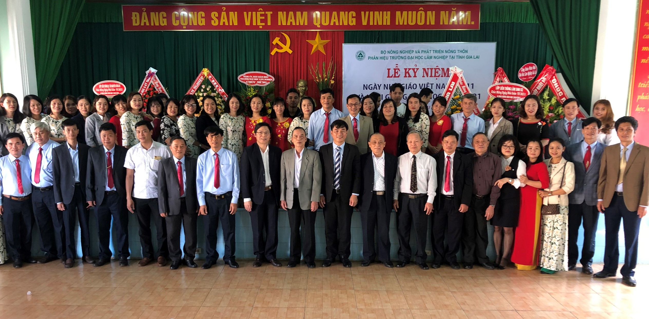 Mở đầu Lễ Kỷ niệm, PGS.TS Bùi Thế Đồi - Uỷ viên Ban thường vụ, Phó Hiệu trưởng Trường ĐHLN, kiêm Giám đốc Phân hiệu ĐHLN tại tỉnh Gia Lai đọc diễn văn chào mừng ngày Nhà giáo Việt Nam 20/11. Giám đốc đã thay mặt Phân hiệu bày tỏ sự kính trọng và lòng biết ơn sâu sắc đối với các thế hệ thầy, cô giáo đã hết lòng vì sự nghiệp đào tạo của Trường trung cấp Lâm nghiệp Tây Nguyên trước đây và Phân hiệu Trường ĐHLN tại tỉnh Gia Lai hiện nay.