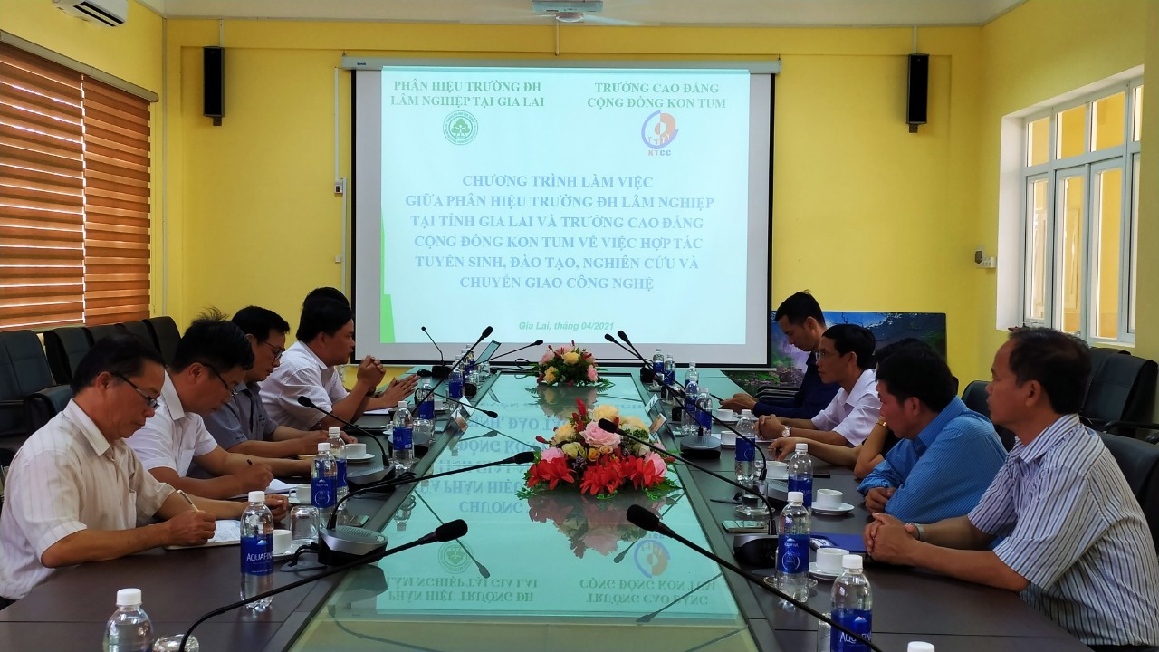 Chiều ngày 01/4/2021, Phân hiệu trường Đại học Lâm nghiệp tại tỉnh Gia Lai và Trường Cao đẳng Cộng đồng Kon Tum tổ chức chương trình làm việc phối hợp tuyển sinh và đào tạo.