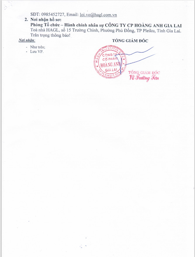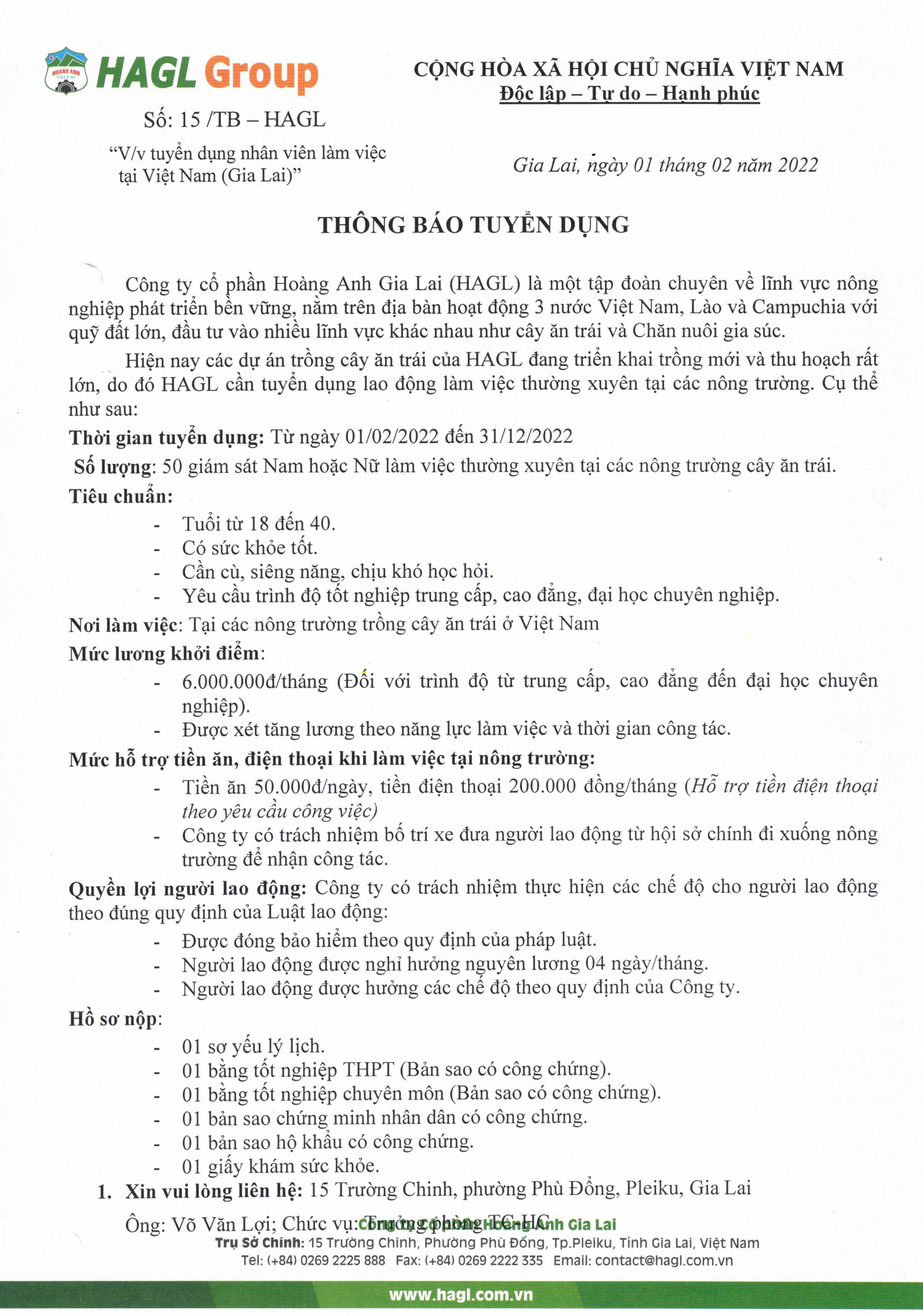 Thông báo tuyển dụng nhân viên ( Công ty cổ phần Hoàng Anh Gia Lai)