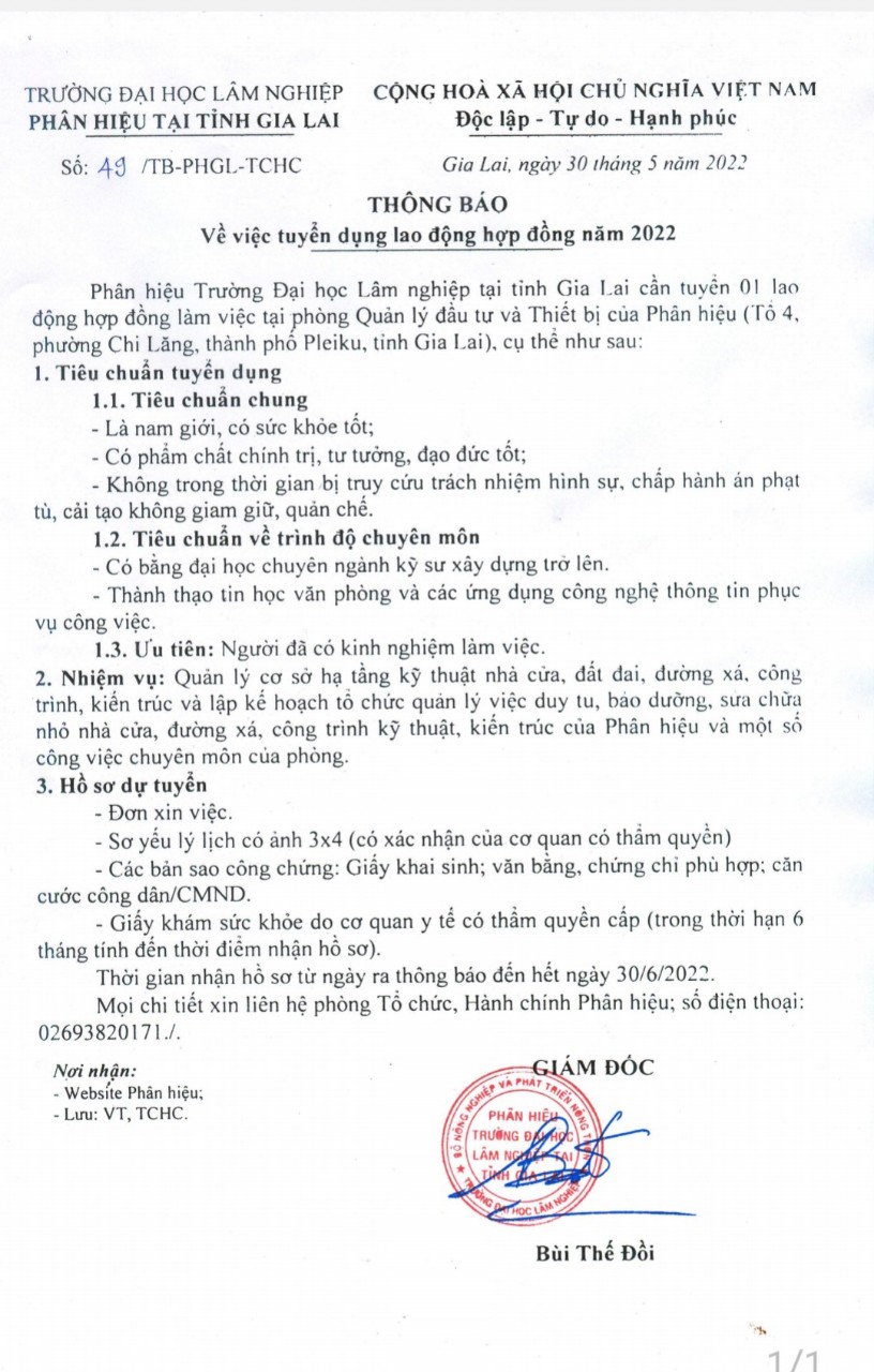 TRƯỜNG ĐẠI HỌC LÂM NGHIỆP TỔNG HỢP thông báo tuyển dụng hợp đồng lao động năm 2022