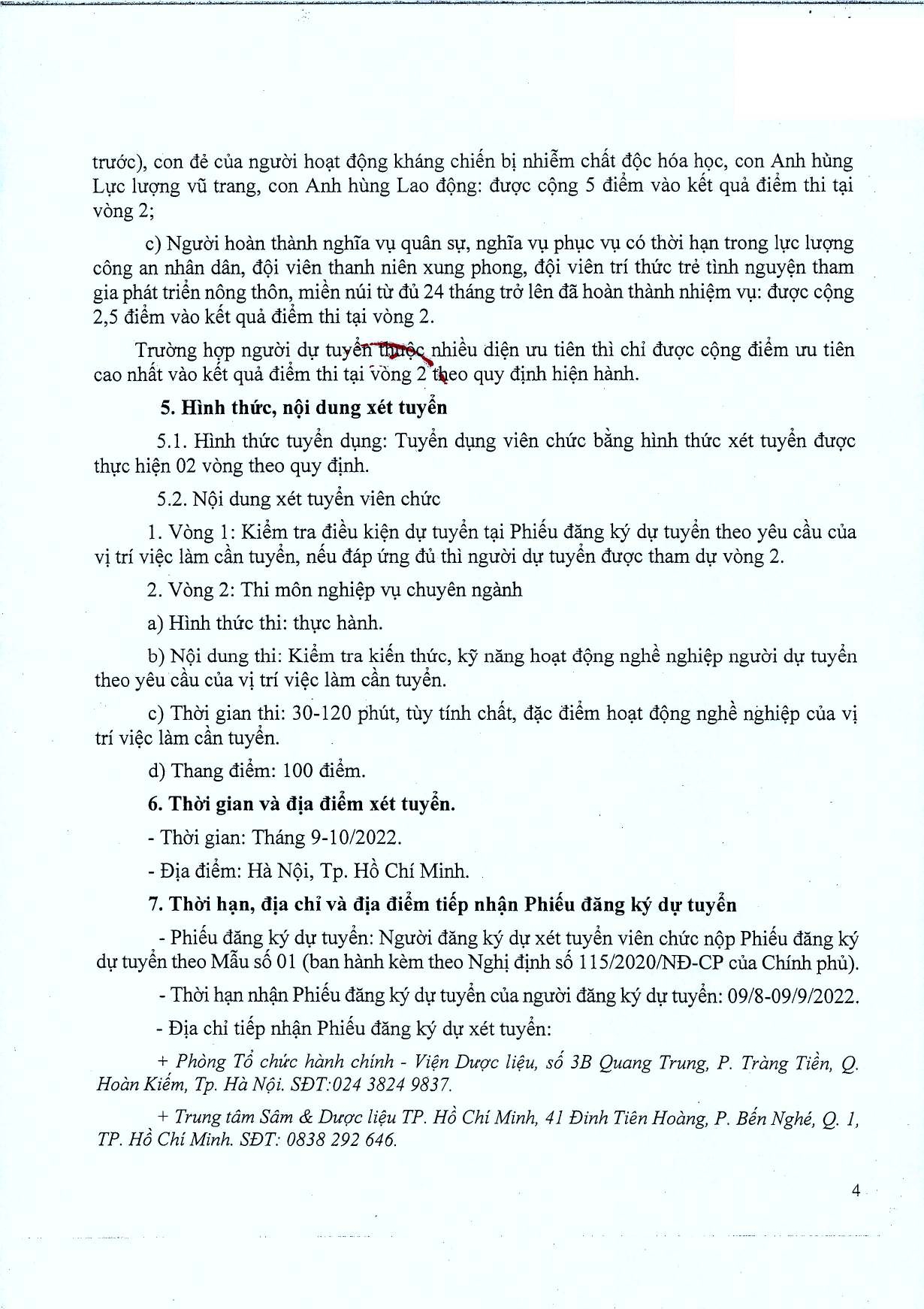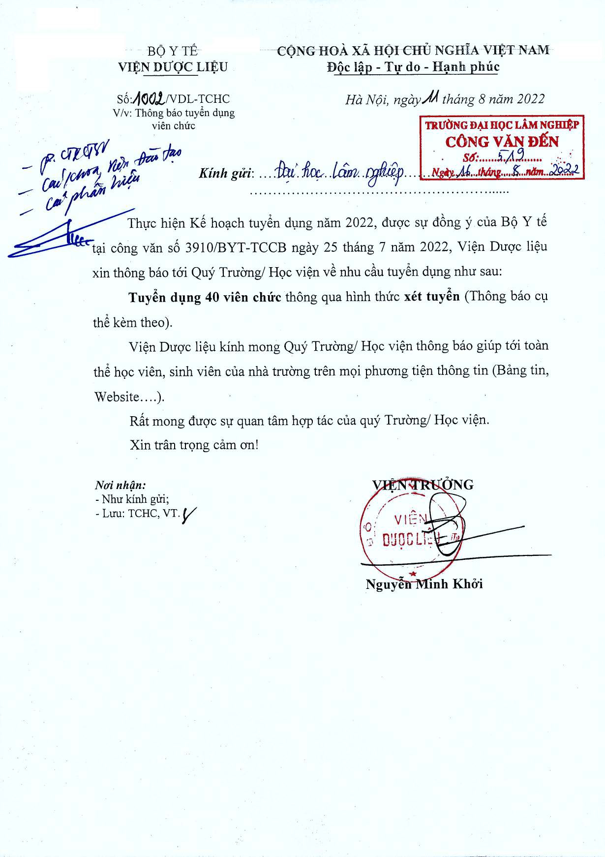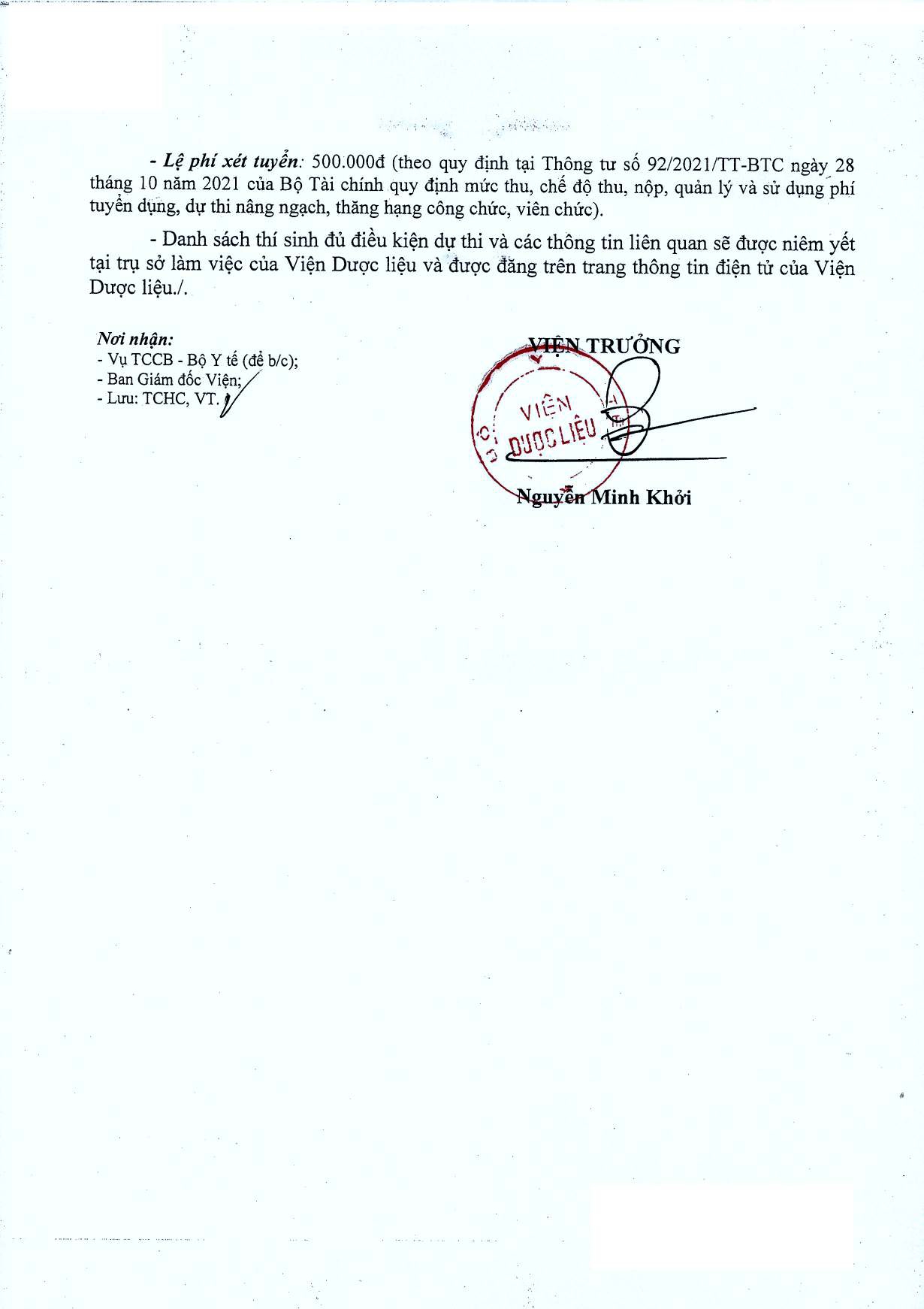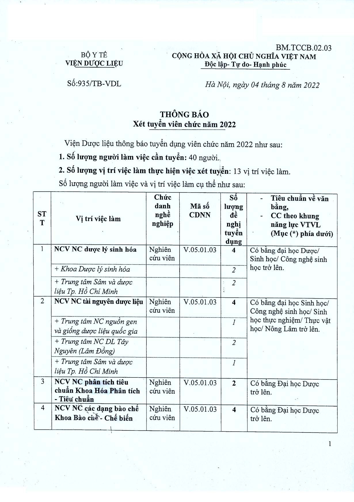 Viện Dược liệu thông báo tuyển dụng viên chức