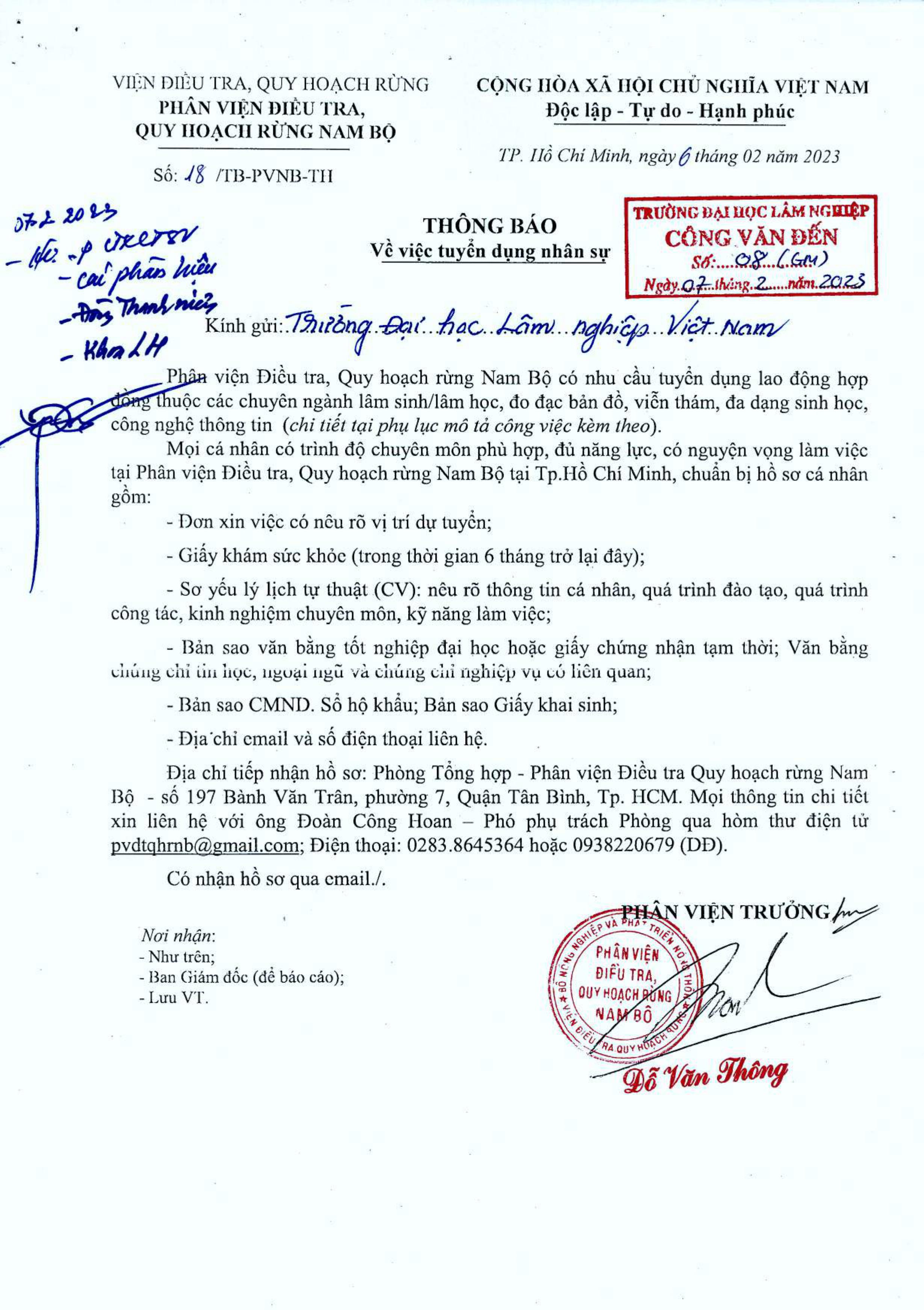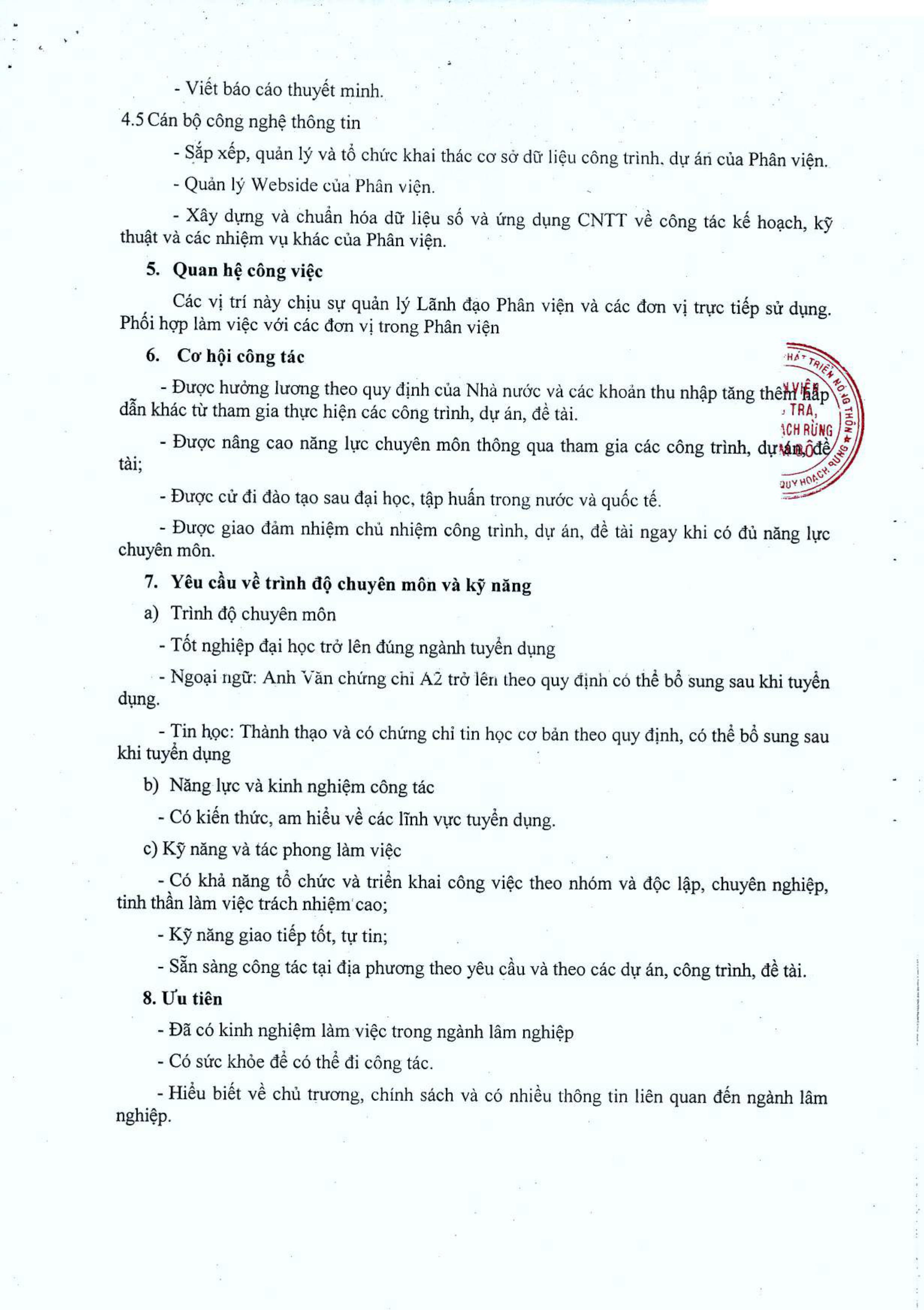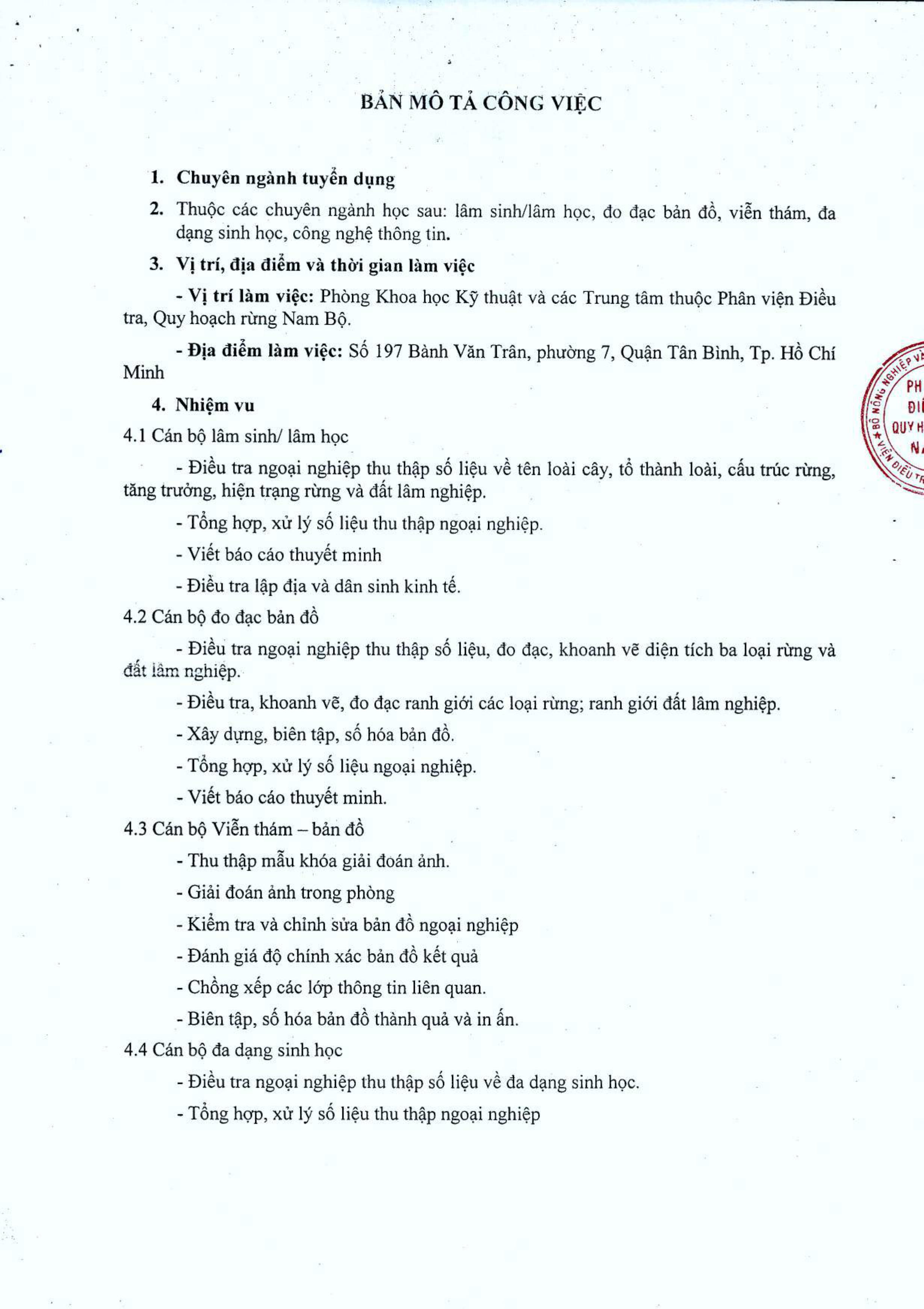 Phân viện Điều tra Quy hoạch rừng Nam Bộ thông báo tuyển dụng nhân sự