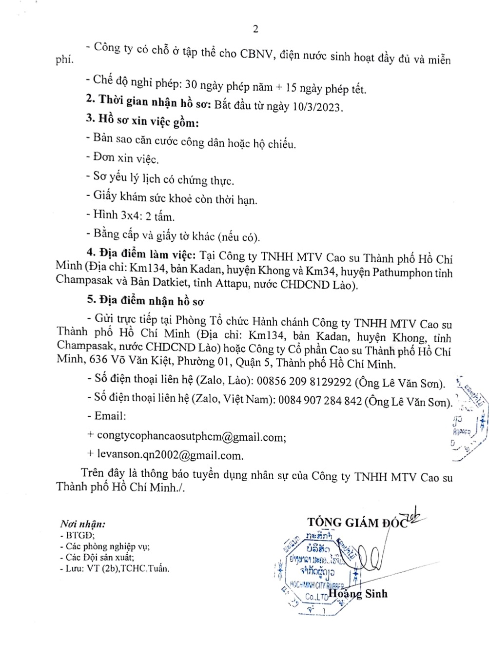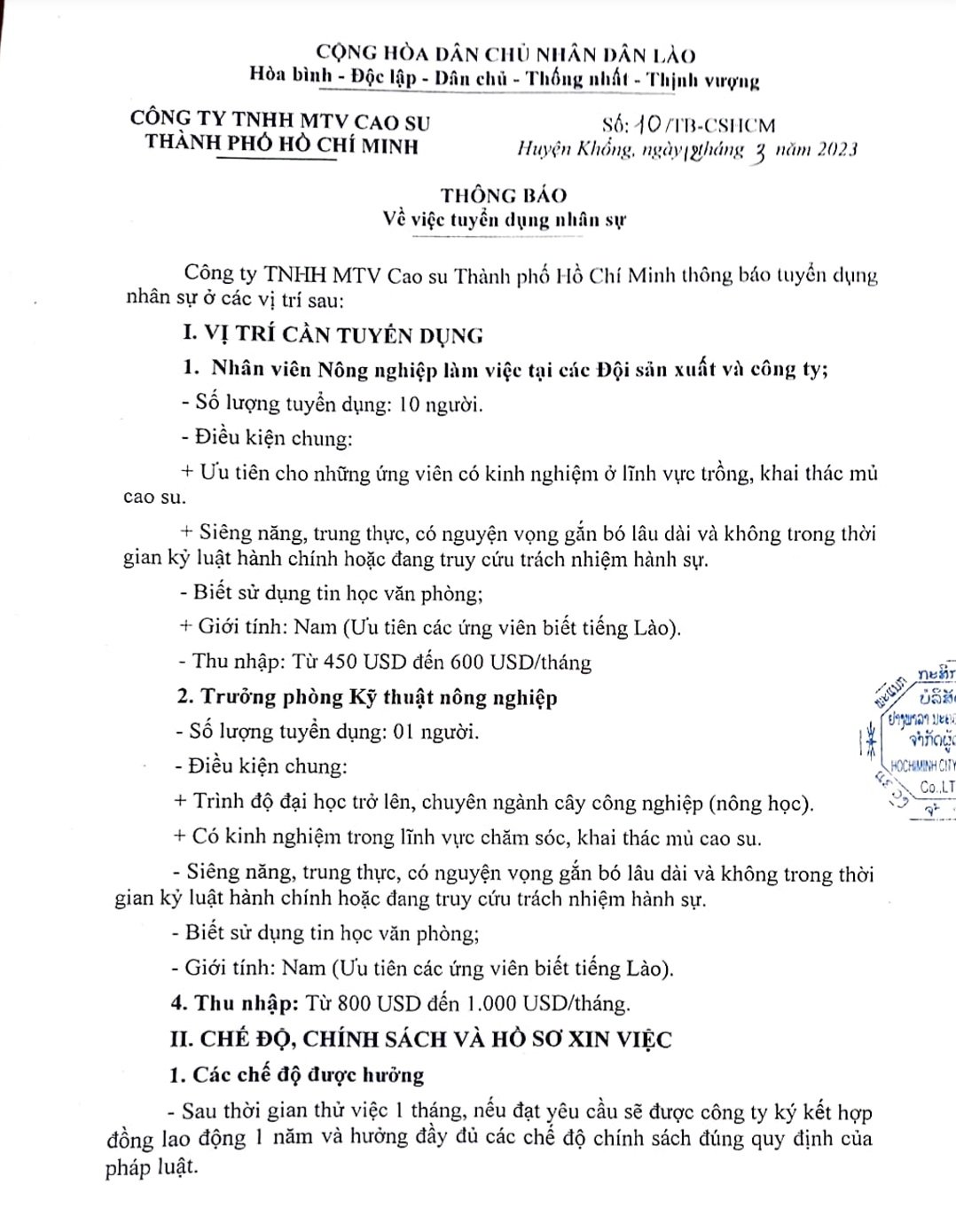 Công ty TNHH MTV Cao su Thành Phố Hồ Chí Minh thông báo tuyển dụng nhân sự